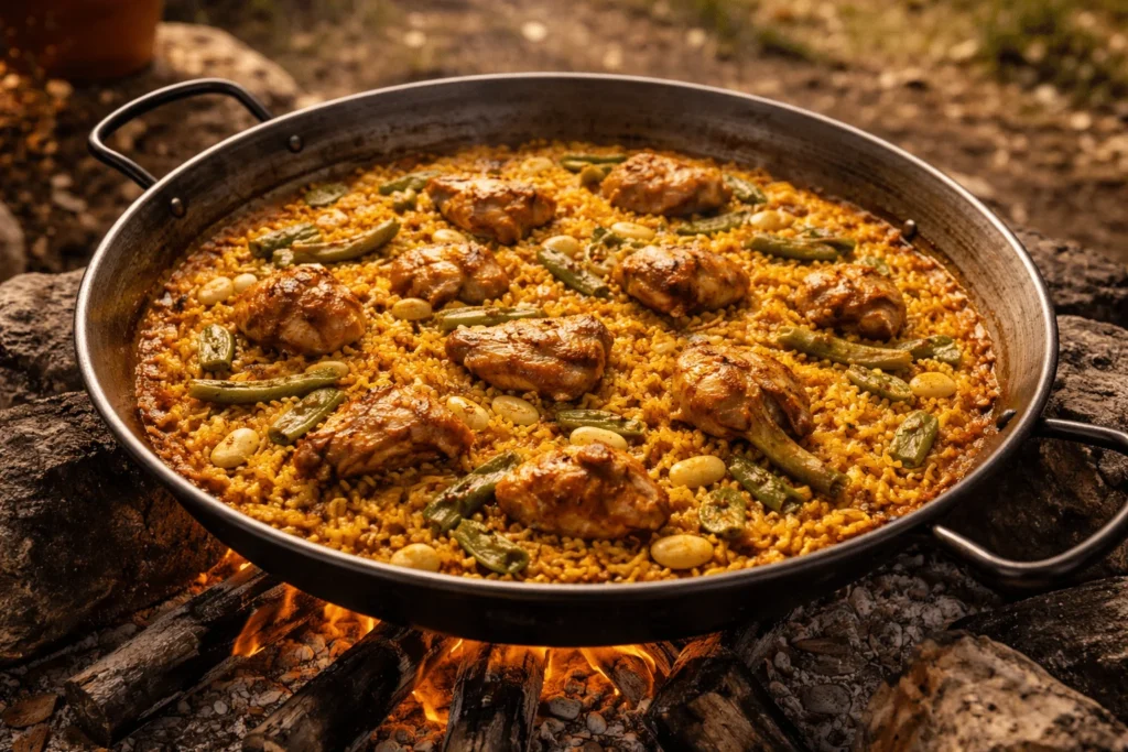 Se cocinaba al aire libre, sobre un fuego de leña, en un recipiente ancho y poco profundo llamado paellera, que permitía que el arroz se cocinara de manera uniforme y adquiriera la textura característica que conocemos hoy. Incluso el propio nombre “paella” proviene del latín patella, que significa sartén o plato ancho, reflejando su forma única.